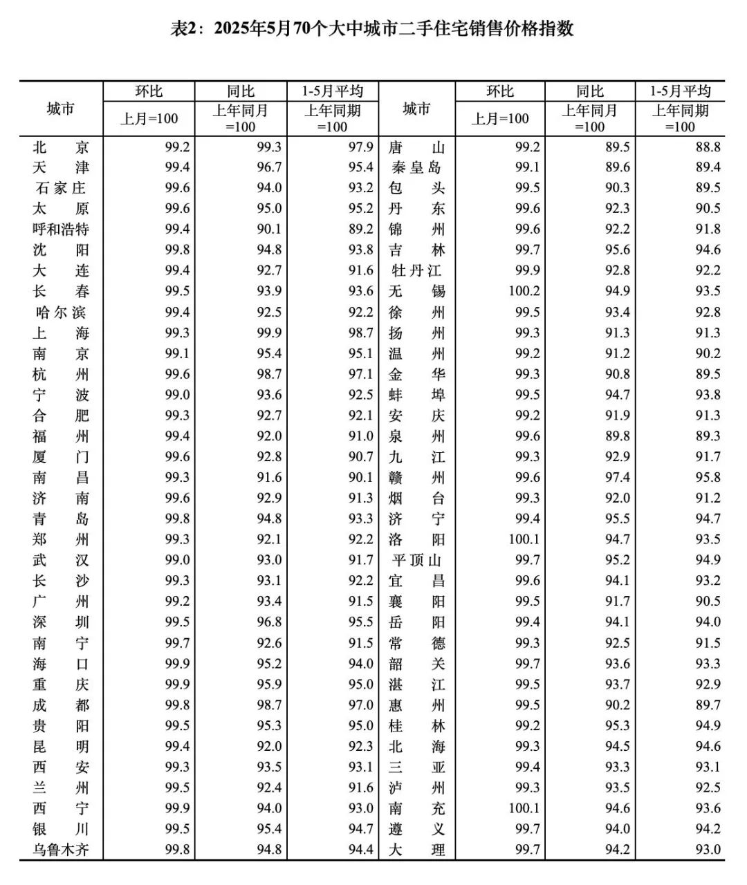 惯例给新读者解释一下,环比99就是比上个月跌了1%,同比101就是比去年5月涨了1%。