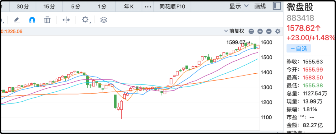 所以今年如果你坚持炒膝盖以下部位的小微盘股,应该有不错的盈利,10-20%是平均水平,但如果你买盘子稍微大一点的就难了,除了银行、黄金等少数几个行业外,剩余的这半年就没涨过。