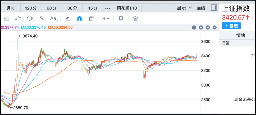 经过这两天的上涨,指数又又又一次回到了震荡区间的上沿,也就是3400+,之前大概有四五次都是被3500点给挡回来,这次看看能不能突破。短期内没有显著利空隐患,和美国的谈判说好了90天缓冲期,从5月12日开始算还有一个多月,时间够,就看a股中不中用了。
